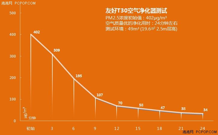 前面我們介紹過,通過抽煙人為將20平米左右相對封閉室內(nèi)的PM2.5濃度控制在402ug/m3,這是即便北京冬天都并不常見的高污染狀態(tài),對應(yīng)到居家環(huán)境大致可以看成T30應(yīng)用到最為嚴(yán)重的污染情況了。