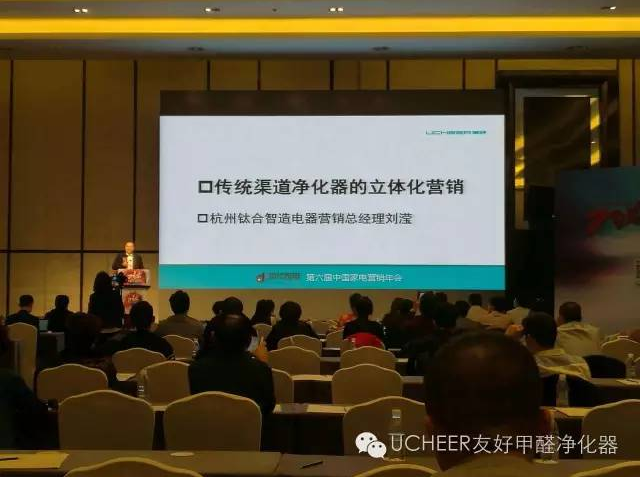 杭州鈦合智造電器有限公司傾力打造的旗艦品牌—UCHEER友好甲醛凈化器,此次攜領(lǐng)匠心之作除醛霸“T68”以及多款家用、車載、除味凈化產(chǎn)品,首次亮相中國(guó)家電營(yíng)銷年會(huì)。現(xiàn)場(chǎng)前來(lái)了解的嘉賓無(wú)一不對(duì)友好公司自主研發(fā)的CH-cut醛分解技術(shù)表現(xiàn)出濃厚的興趣,該技術(shù)革命性地利用納米級(jí)功能性催化劑材料的分解作用,在室溫下對(duì)多種以碳?xì)滏溞问酱嬖诘目諝馕廴疚镞M(jìn)行徹底分解,完敗甲醛、苯等TVOC。“除PM2.5只是基本功,去除甲醛才是真功夫”友好甲醛凈化器營(yíng)銷總經(jīng)理劉瀅用他鏗鏘有力的聲音介紹友好產(chǎn)品的理念,得到前來(lái)咨詢嘉賓的高度認(rèn)可!
