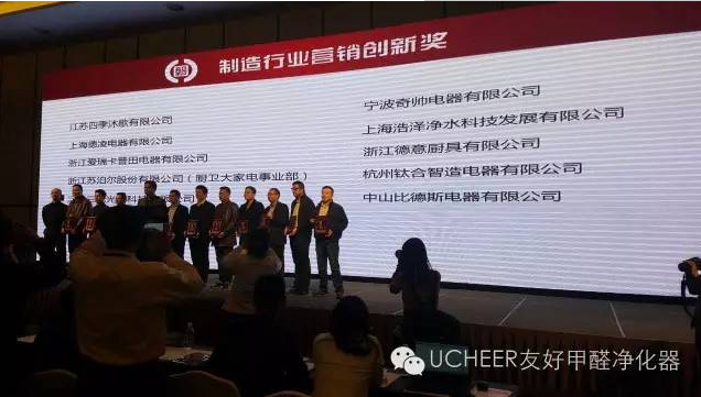 主辦方認(rèn)為:友好甲醛凈化器在營(yíng)銷總經(jīng)理劉瀅的帶領(lǐng)下,成為了全球甲醛凈化器領(lǐng)跑者,更是卓有遠(yuǎn)見(jiàn)地進(jìn)行了甲醛凈化器市場(chǎng)品牌和渠道的戰(zhàn)略部署,打造友好甲醛凈化器立體化營(yíng)銷新格局。此外,友好“除PM2.5只是基本功,去除甲醛才是真功夫”的營(yíng)銷理念,為凈化器行業(yè)樹立了榜樣,憑借“凈化10小時(shí),新房拎包住”營(yíng)銷口號(hào),獲選中國(guó)家電制造行業(yè)營(yíng)銷“磐石獎(jiǎng)”!可謂當(dāng)之無(wú)愧;